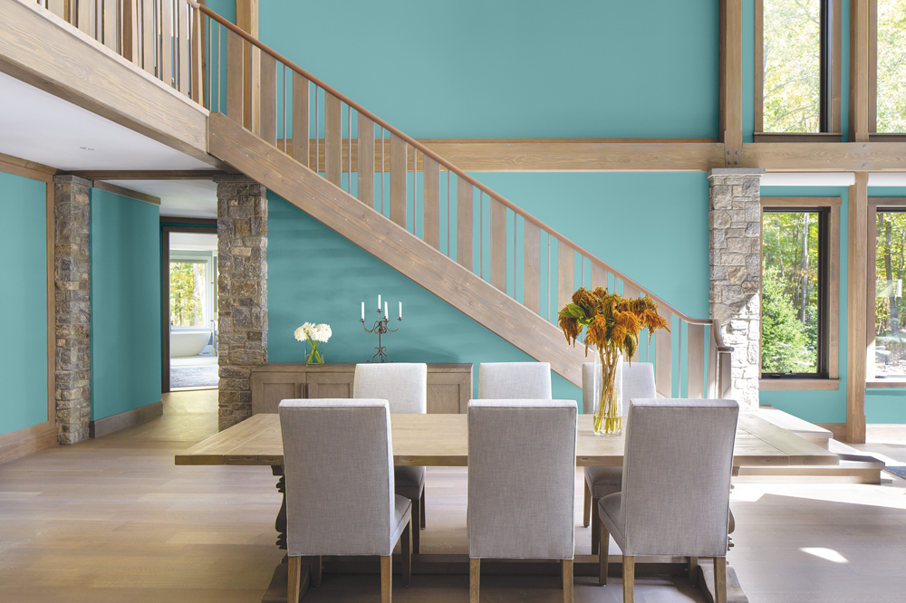 Is this bold shade just a little too daunting for you? Soften the look with a delicate pink like Pink Adobe (6073-31). This pairing tones down the purple while elevating the pink, for a peaceful and calming vibe that’ll radiate throughout your home. Choose accessories that reflect the purple to bring the whole look together and make a trendy statement.