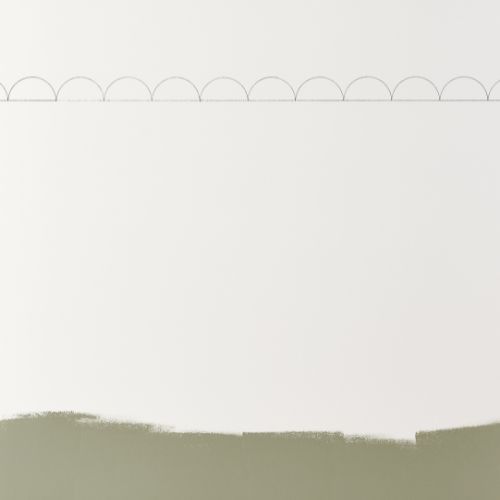 Peignez le mur en dessous des motifs de la couleur Sico de votre choix et servez-vous d’un petit pinceau pour peindre le long des lignes des demi-cercles. Laissez sécher et le tour est joué!